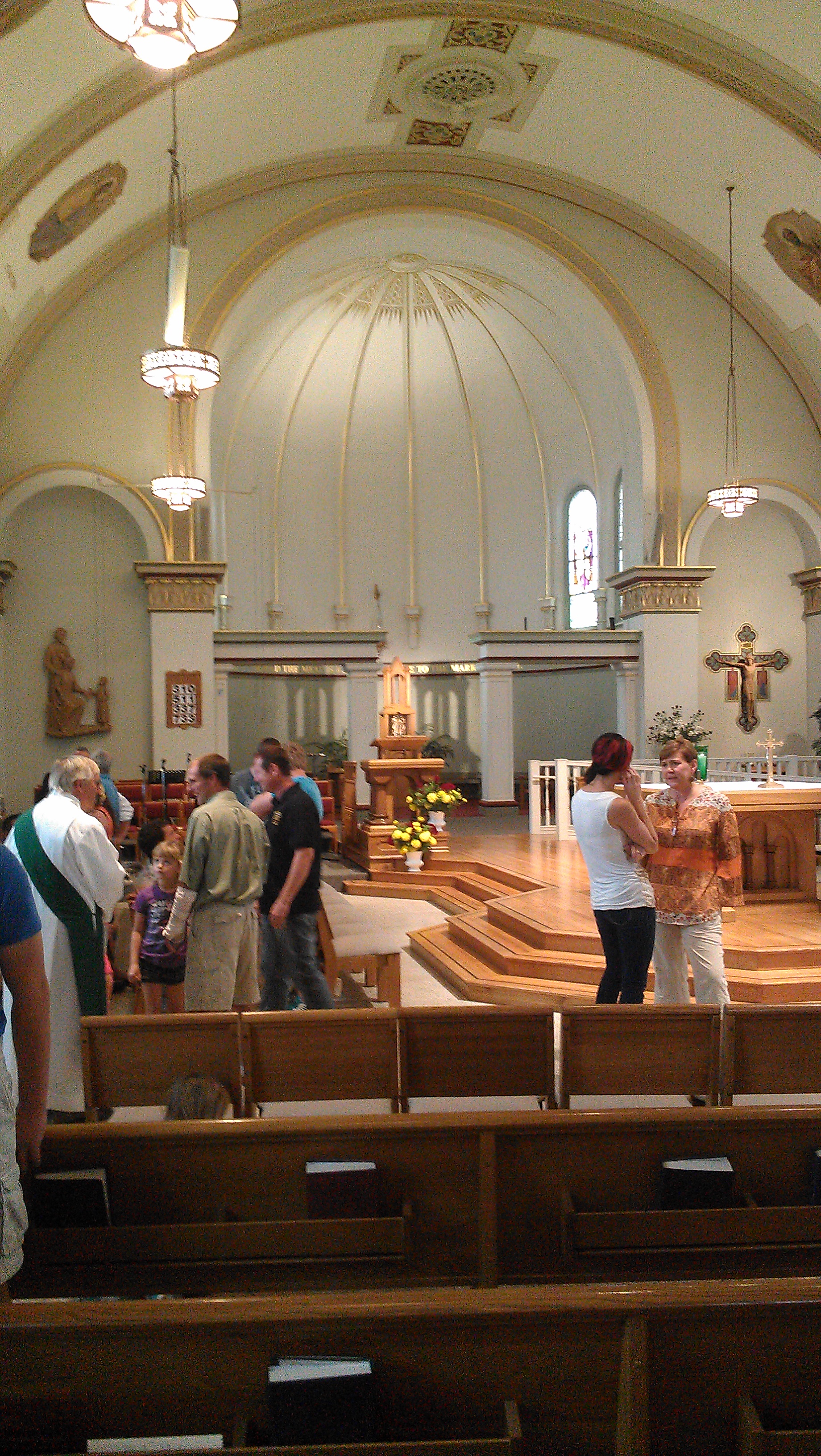 A WONDERFUL Sunday summer morning! We decided on the 8:30am Mass so we left pretty early. It has been a wonderfully cool summer so far, but today was a little humid and about 70. The skies were mostly clear and the sun was shining brightly. Great morning for Mass!!!