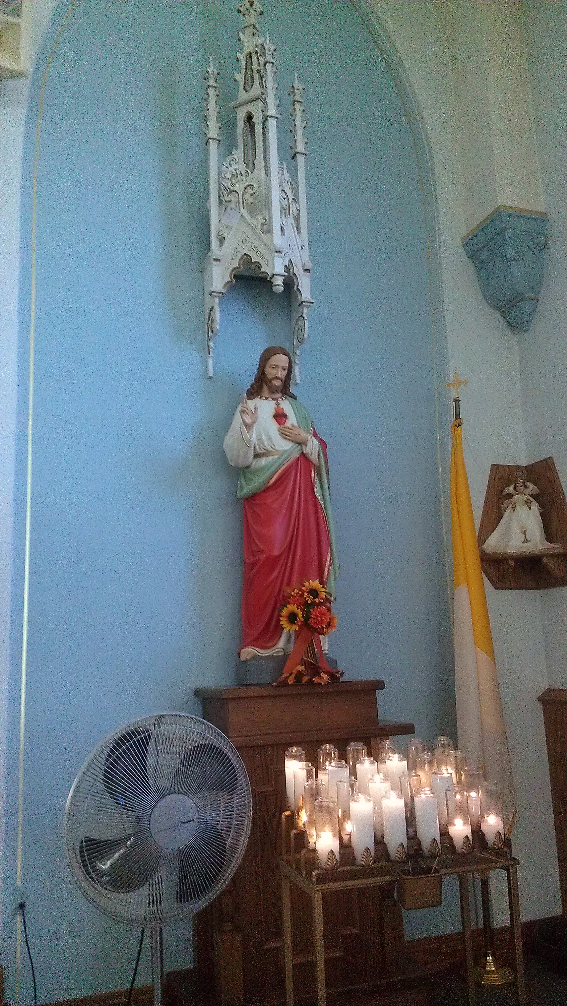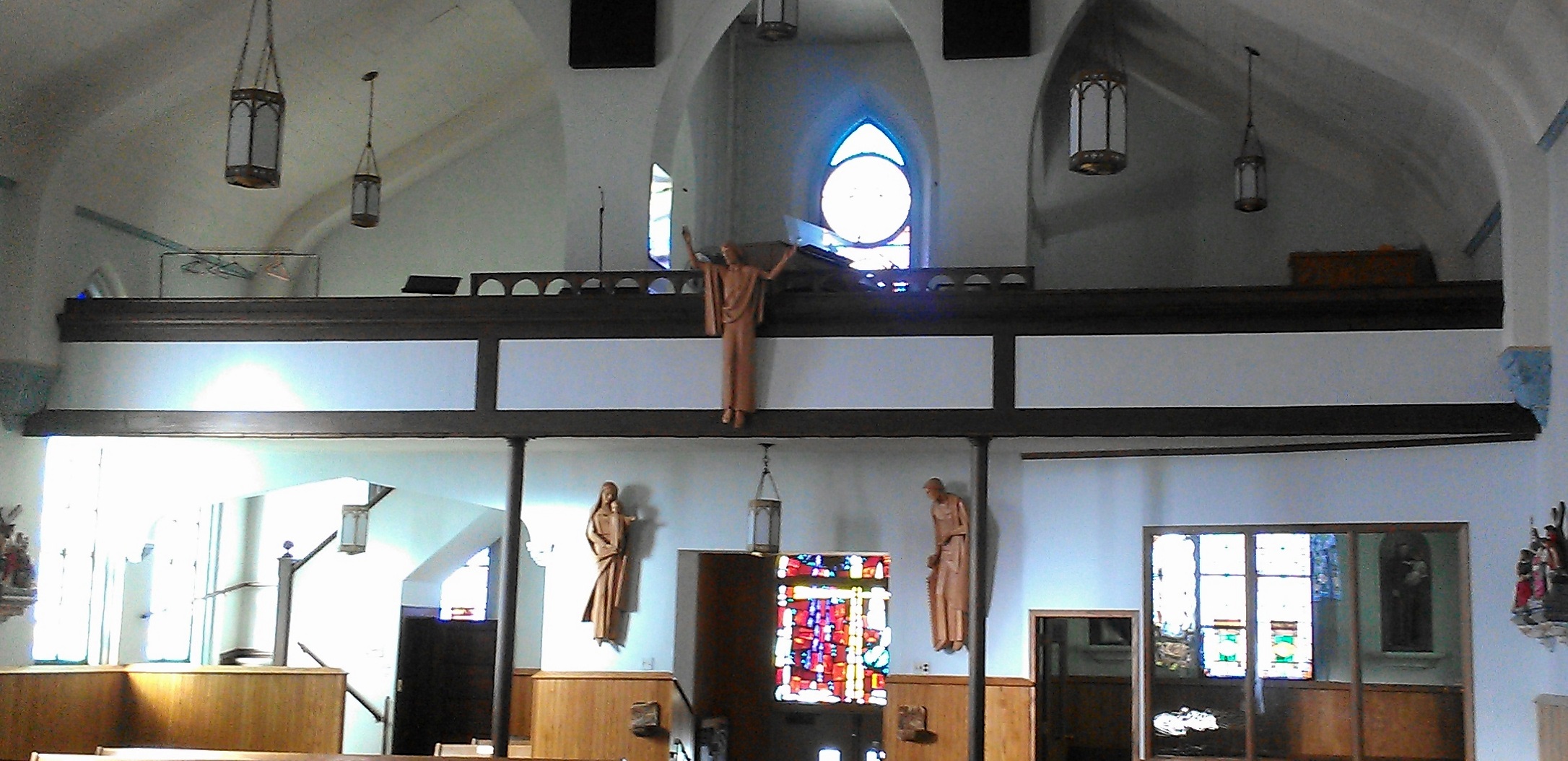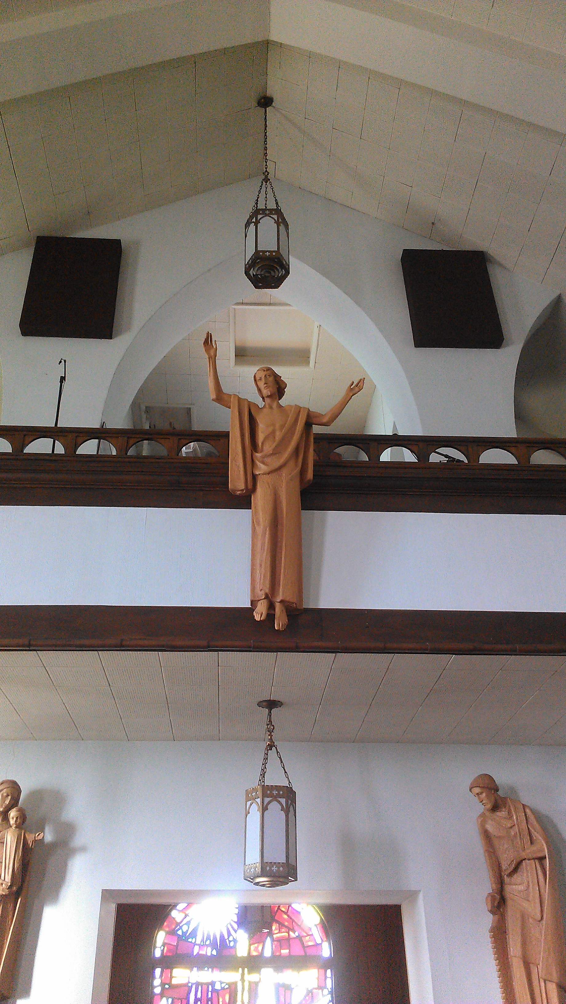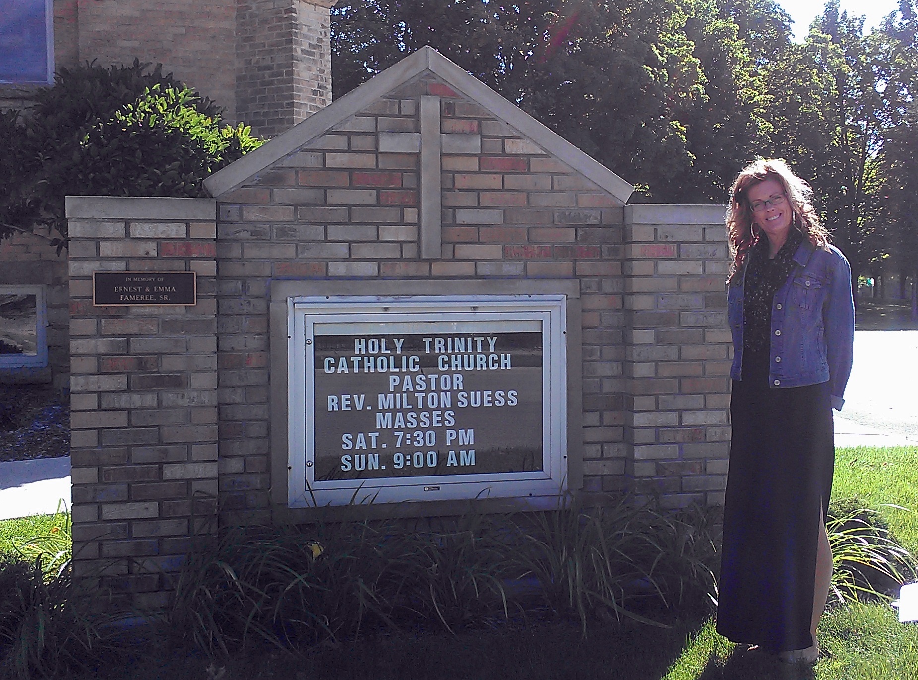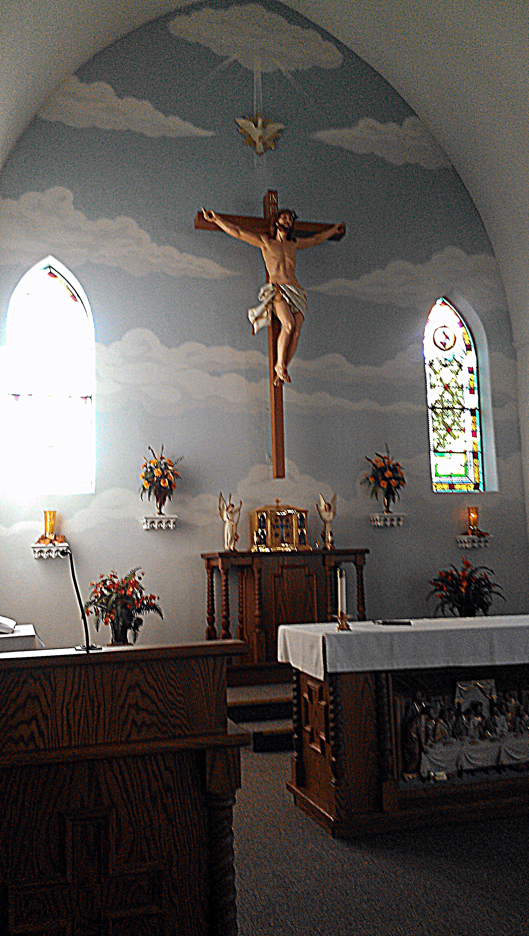 Fr. Suess first comes across as a “little old man” and is probably “up there” in age, but his voice is vibrant and it carries through to the Mass. By the end of the Mass he didn’t seem old at all. He gave a beautiful homily and after Mass we all gathered outside the front of church to partake in the Blessing of the new Cross on the steeple of the church. (It must have been newly installed. I never got to participate in that blessing. Very cool!) Afterward we took our “tour” of the church and got to take a look around. Very nice building and grounds. We didn’t get a chance to meet Fr. Suess as he headed out pretty quickly. I think he serves Luxemburg too so he had another Mass to get to. That probably leads to the church emptying quickly as we were the last ones there.