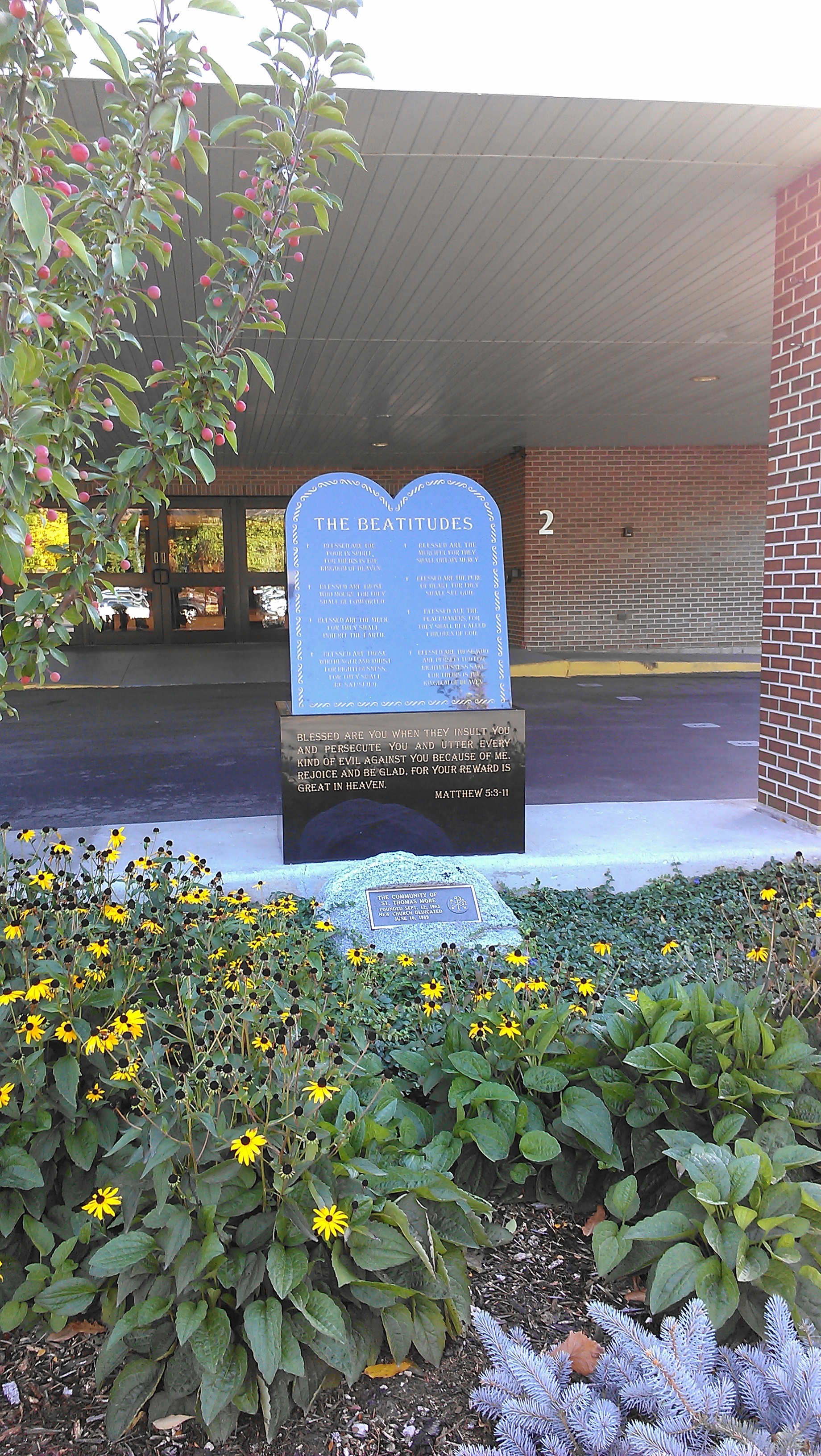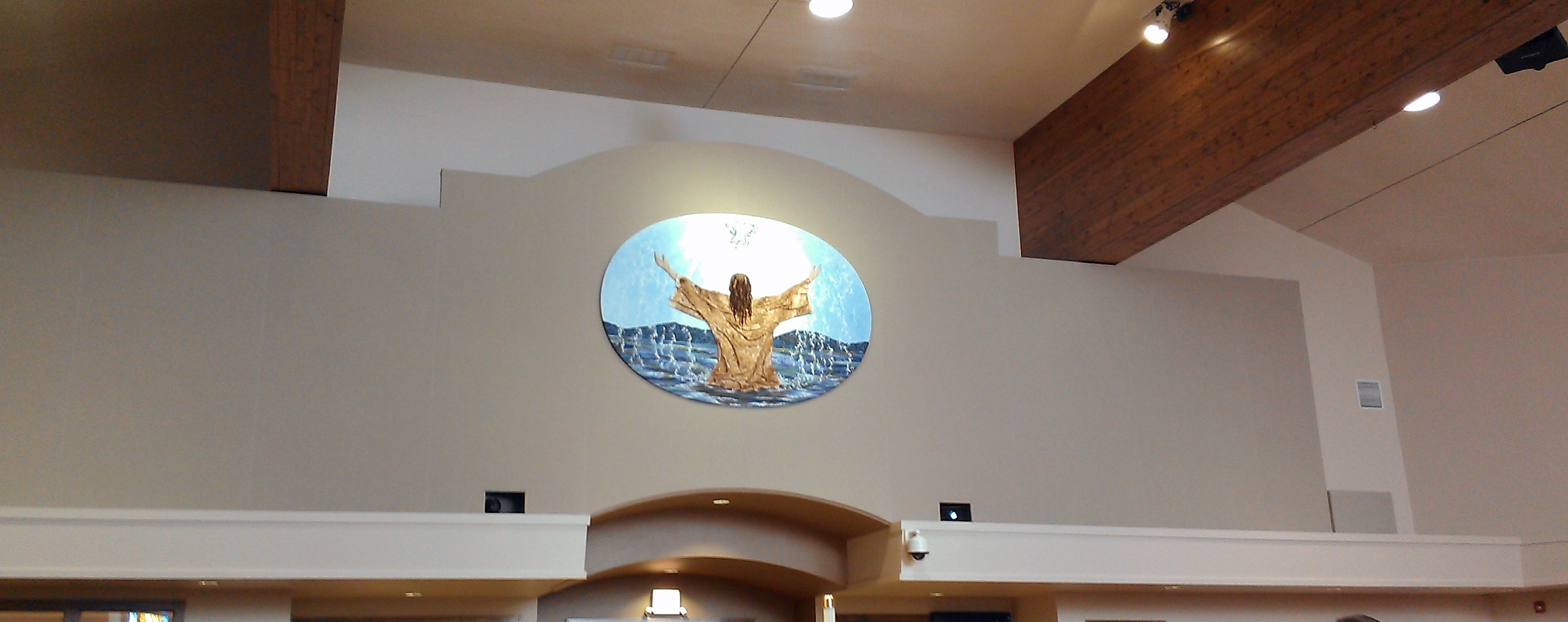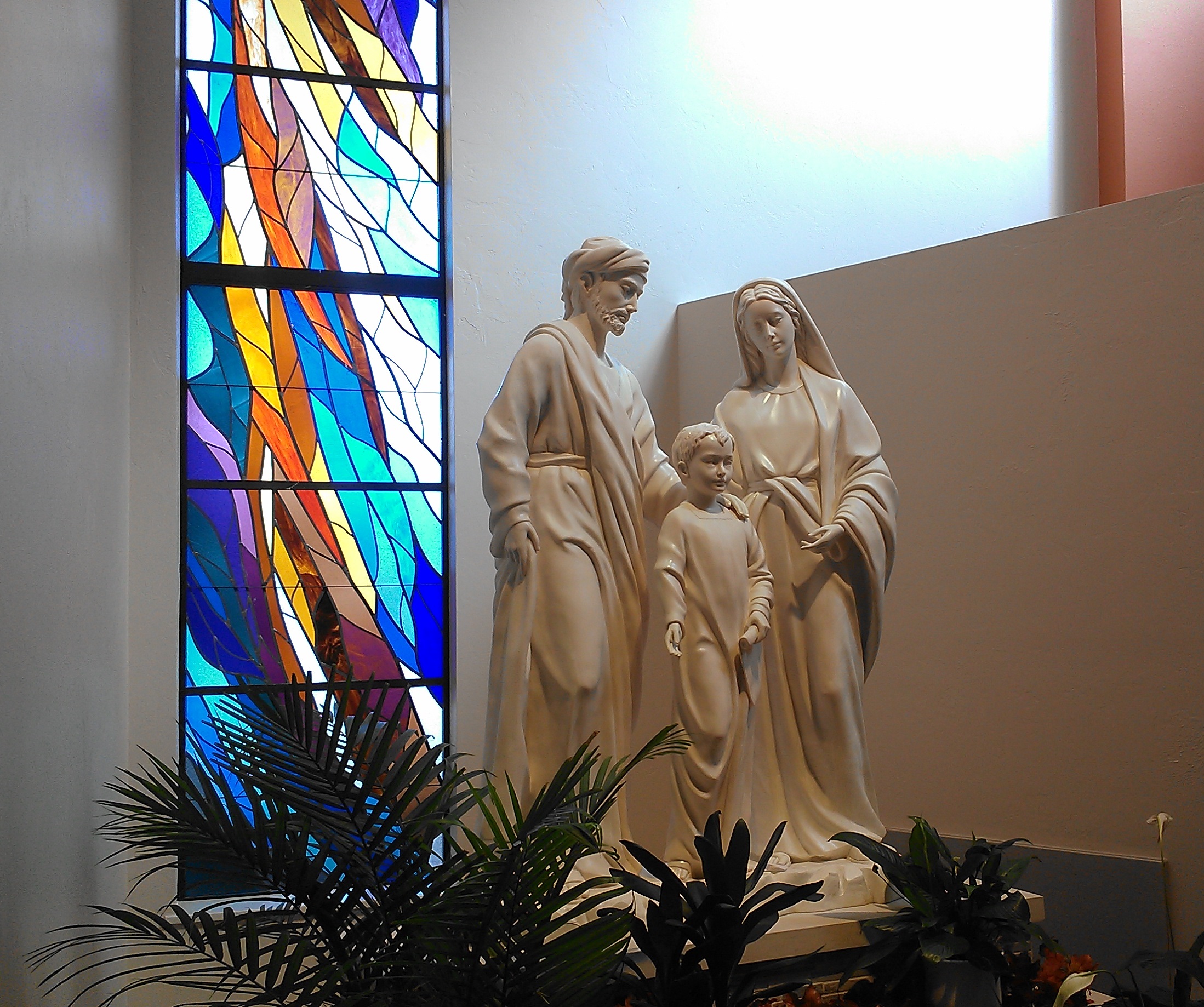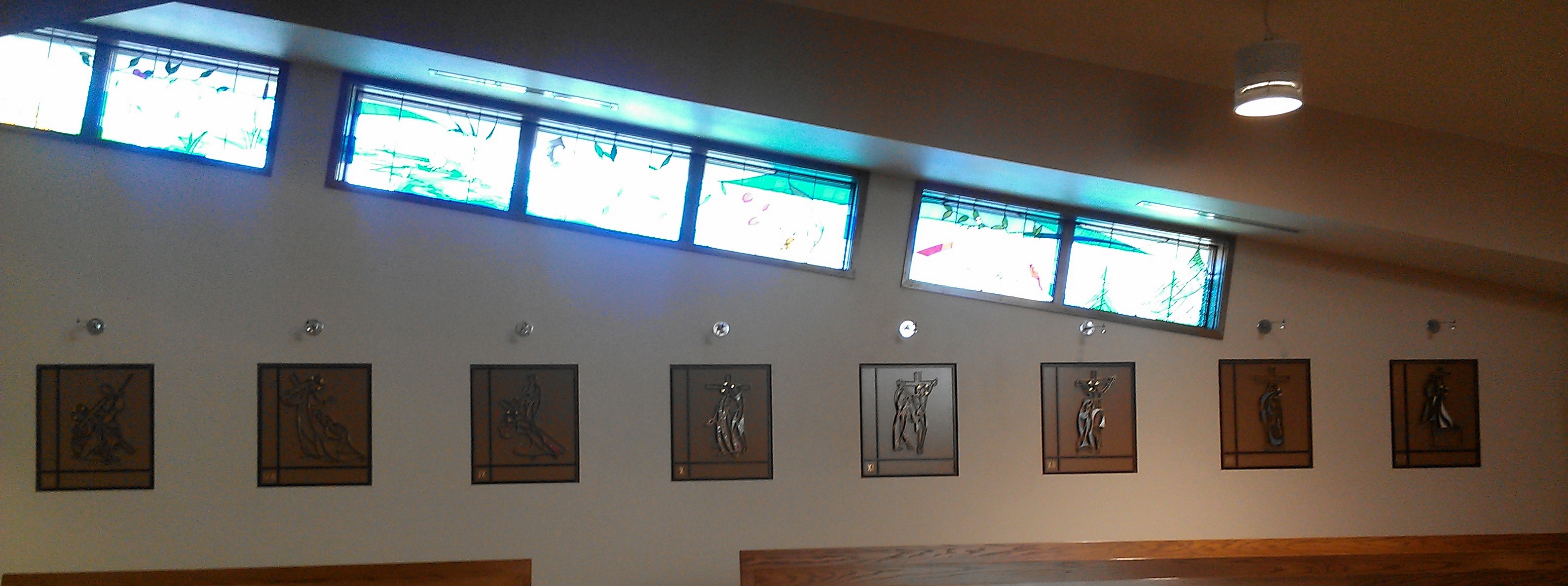 Kay felt the church was more modern and “urban” in feel. Not unfriendly, but you could tell you were in the city. She loved the fountain going into church and the stained glass picture of Mary in the parent/child area.
