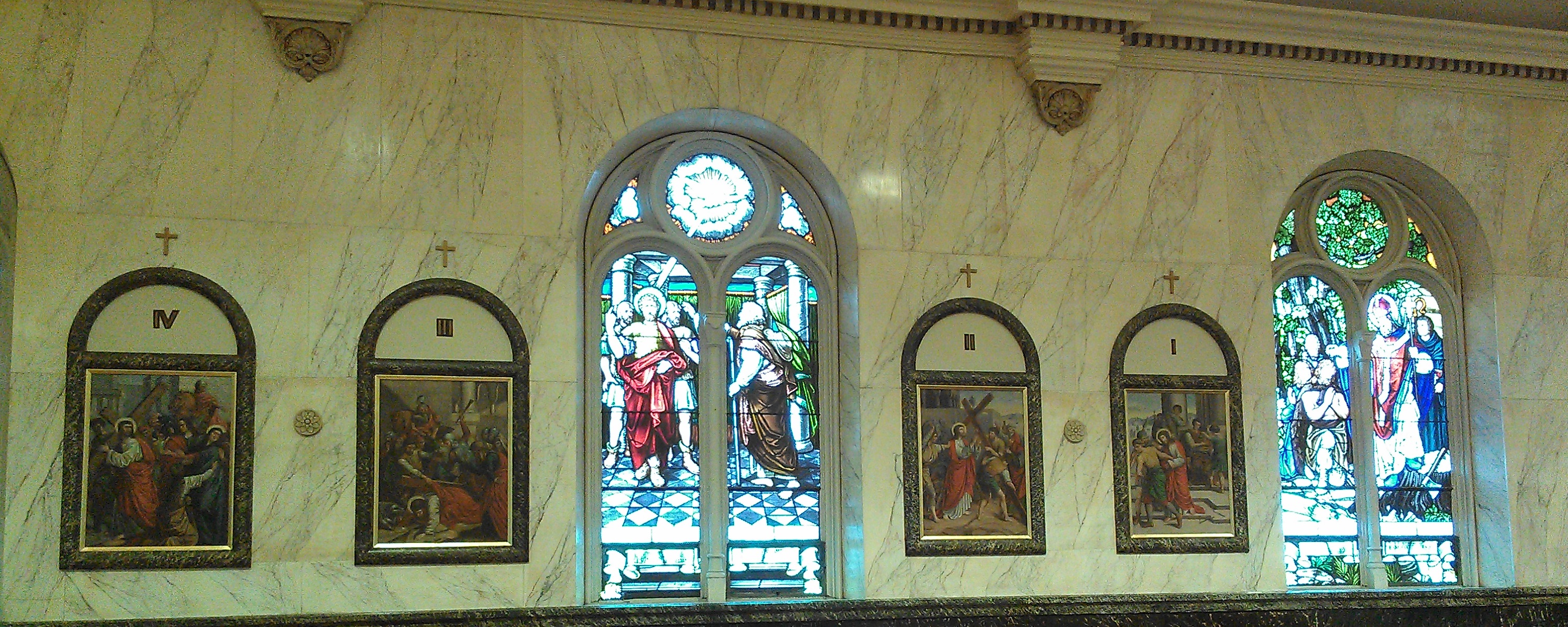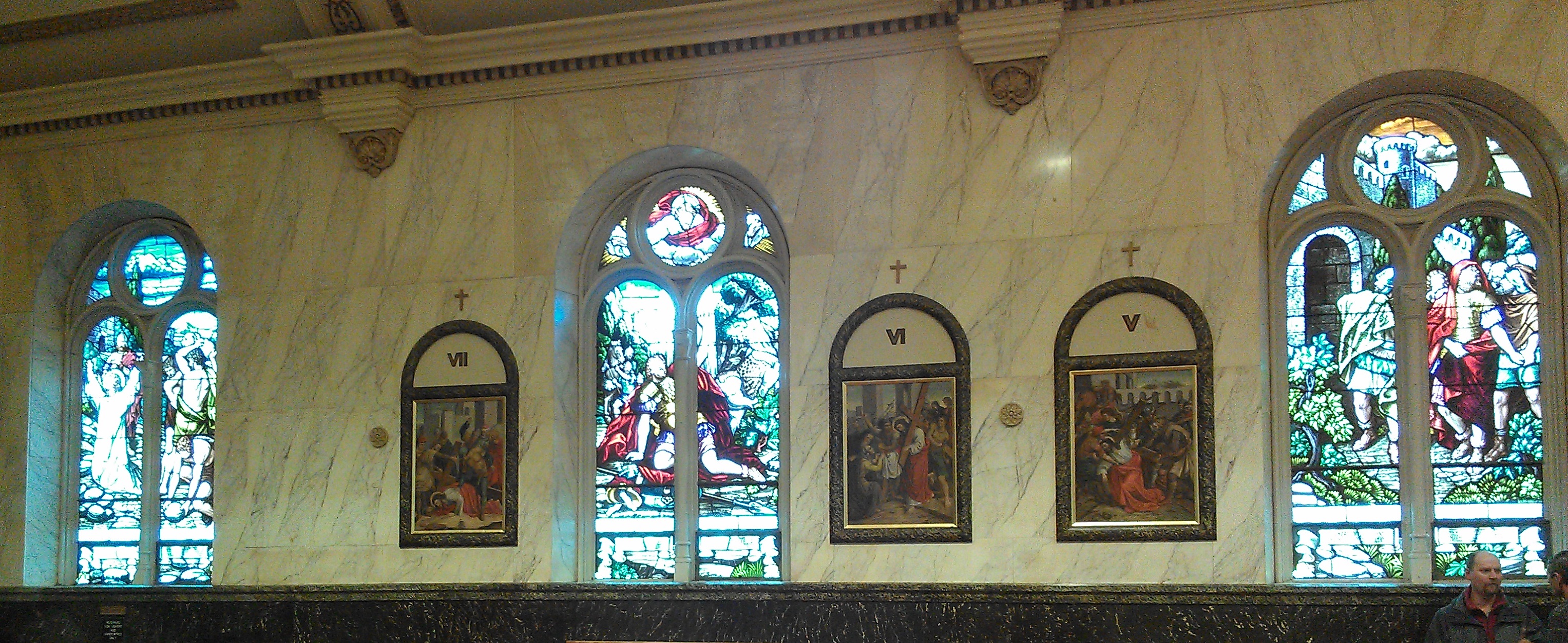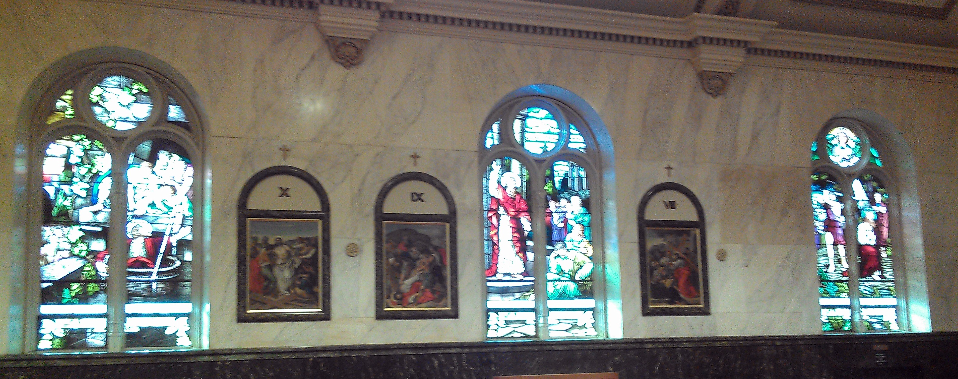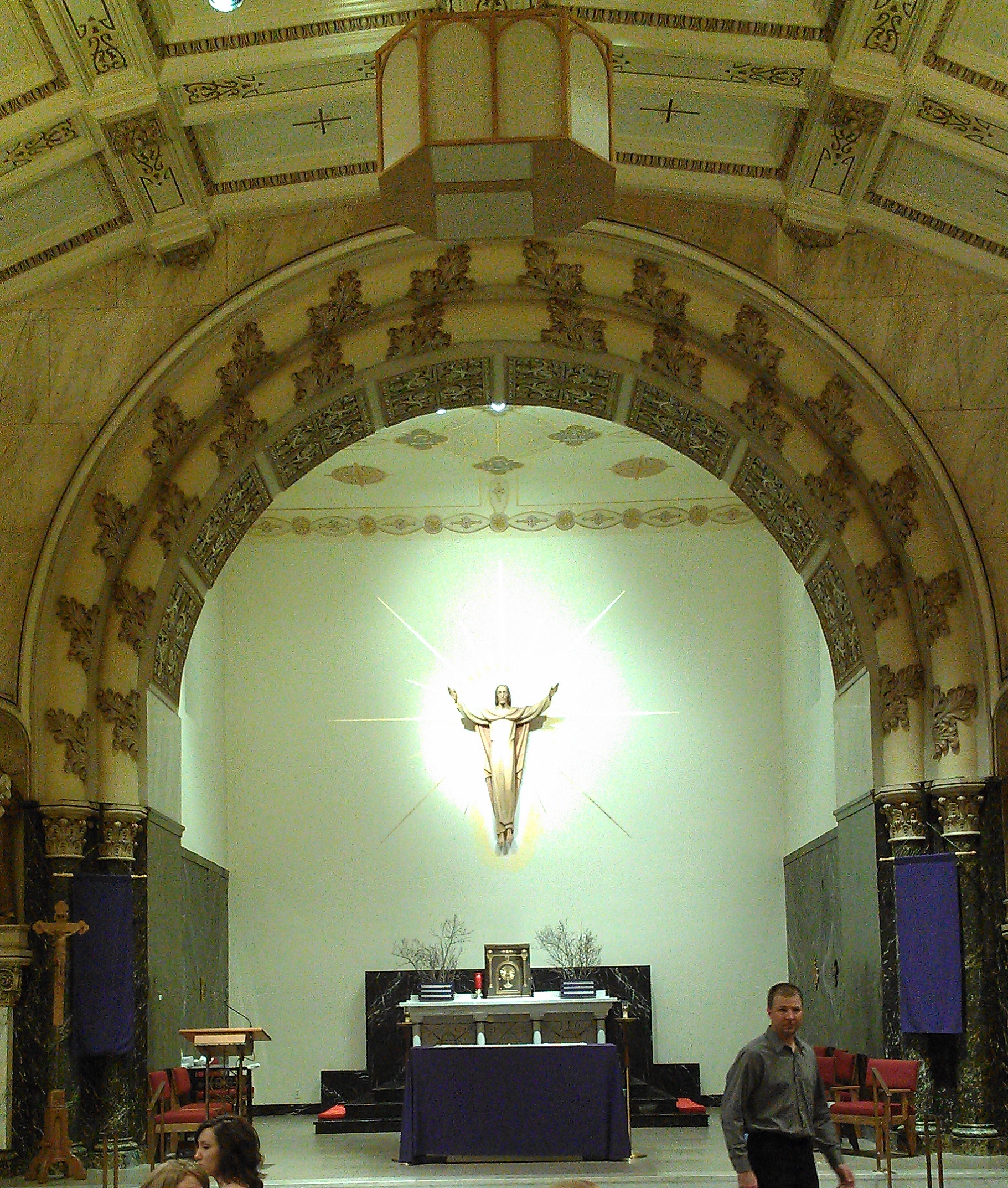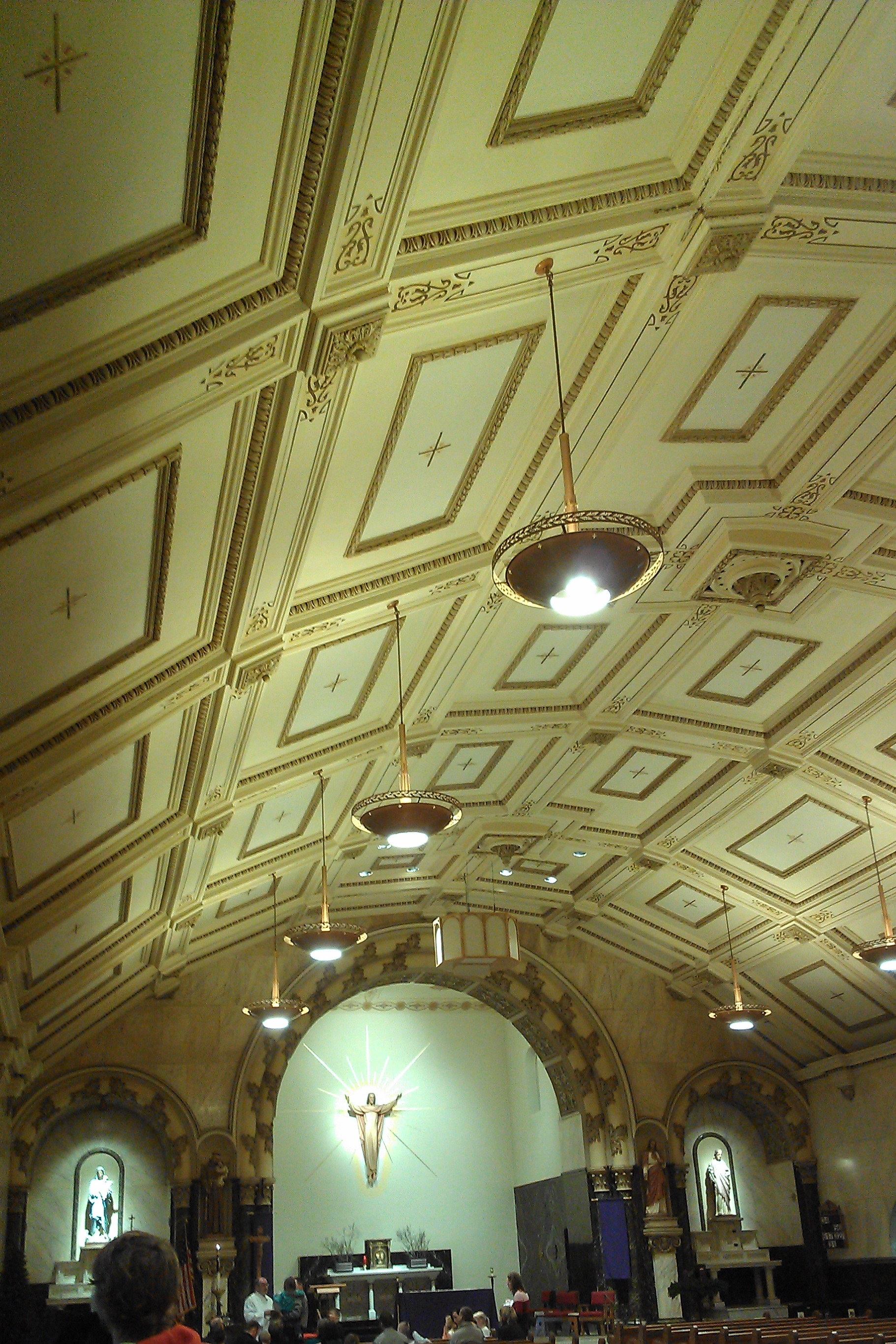 While the outside of the church looks pretty normal or standard, the inside is pretty awesome. I think that is a common theme here as we see different churches. I hope God opens our eyes to the beauty of each, but St. Clare in Wrightstown really was nice. There was a lot of stone but it was very warm and welcoming. The sanctuary was very simple, but beautiful. The stained glass, the statuary, and the ceiling were beautiful.