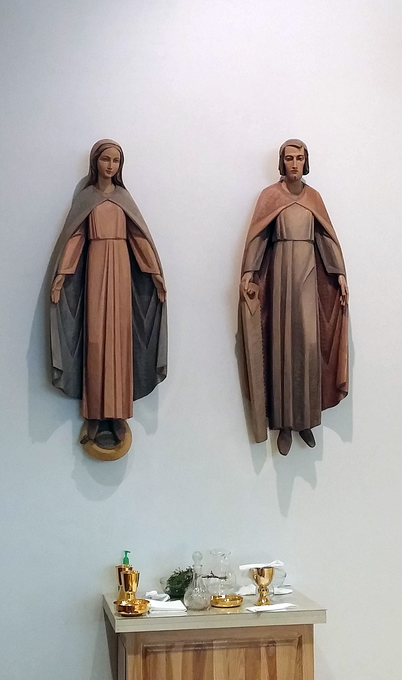 This is a pretty small parish, and from the outside as we drove by on Saturday (to make sure we knew where it was) it didn’t look like much. But as soon as we arrived on Sunday we felt a sense of welcome. The decorations were simple but very beautiful and just so very fitting. The building isn’t a typical "church" style with a steeple or brick or stained glass, and you could guess that maybe budgets aren’t big here, but it was so clean and well-kept you could tell it was a very Holy place of God. As we sat down, I whispered to Kay that “I like it here”. She whispered back “So do I”.
