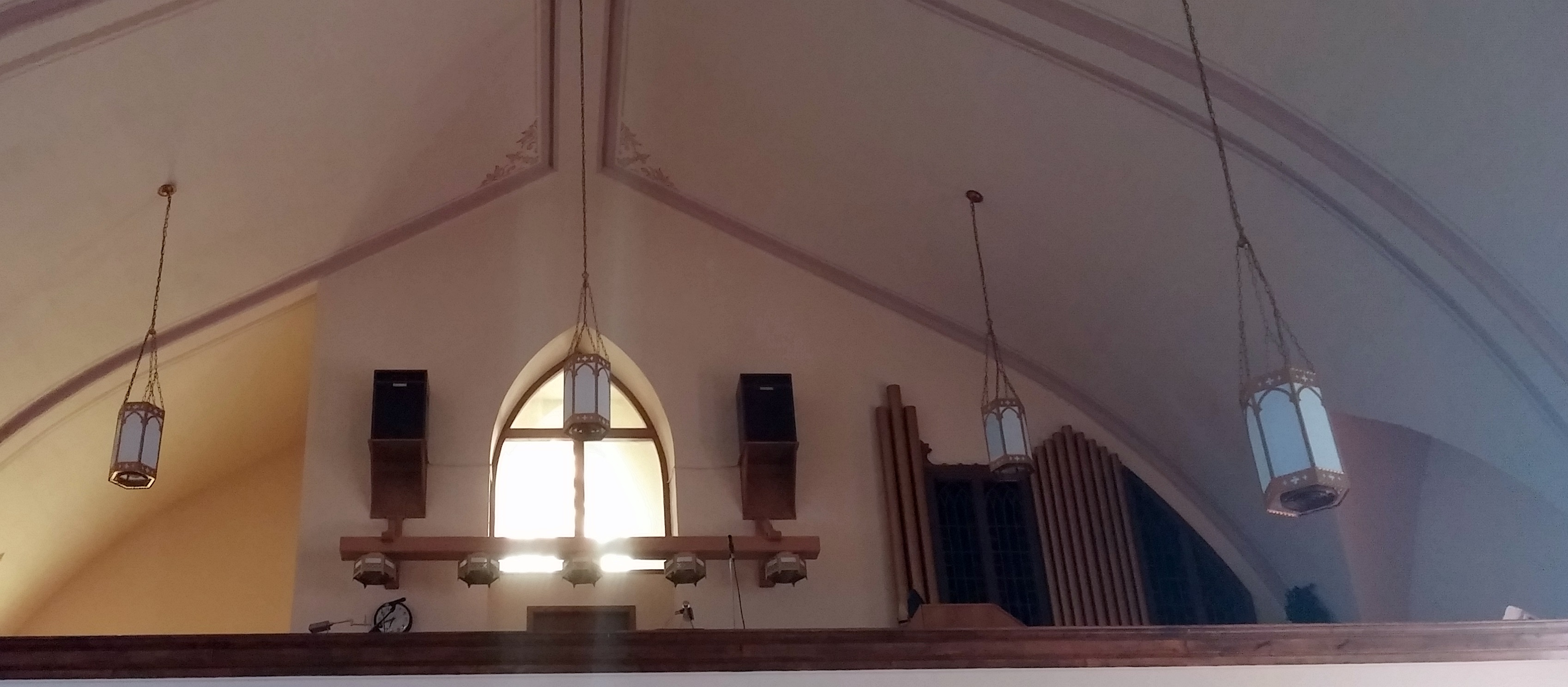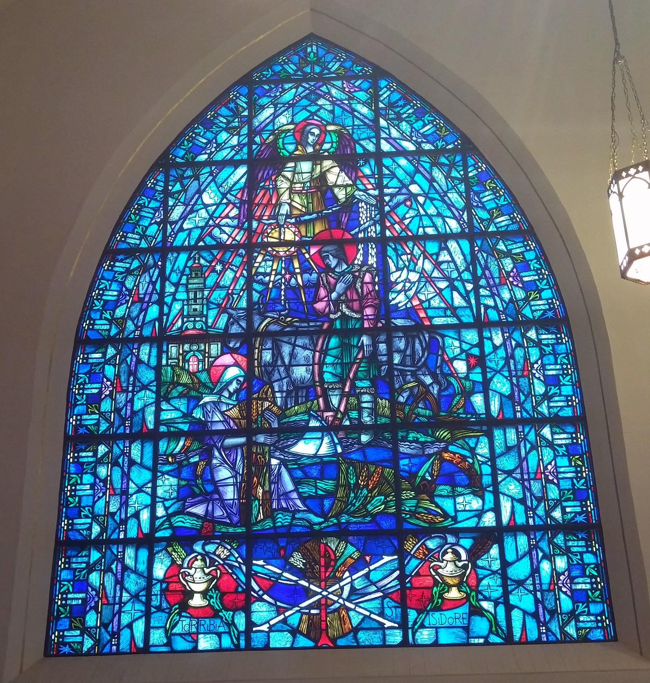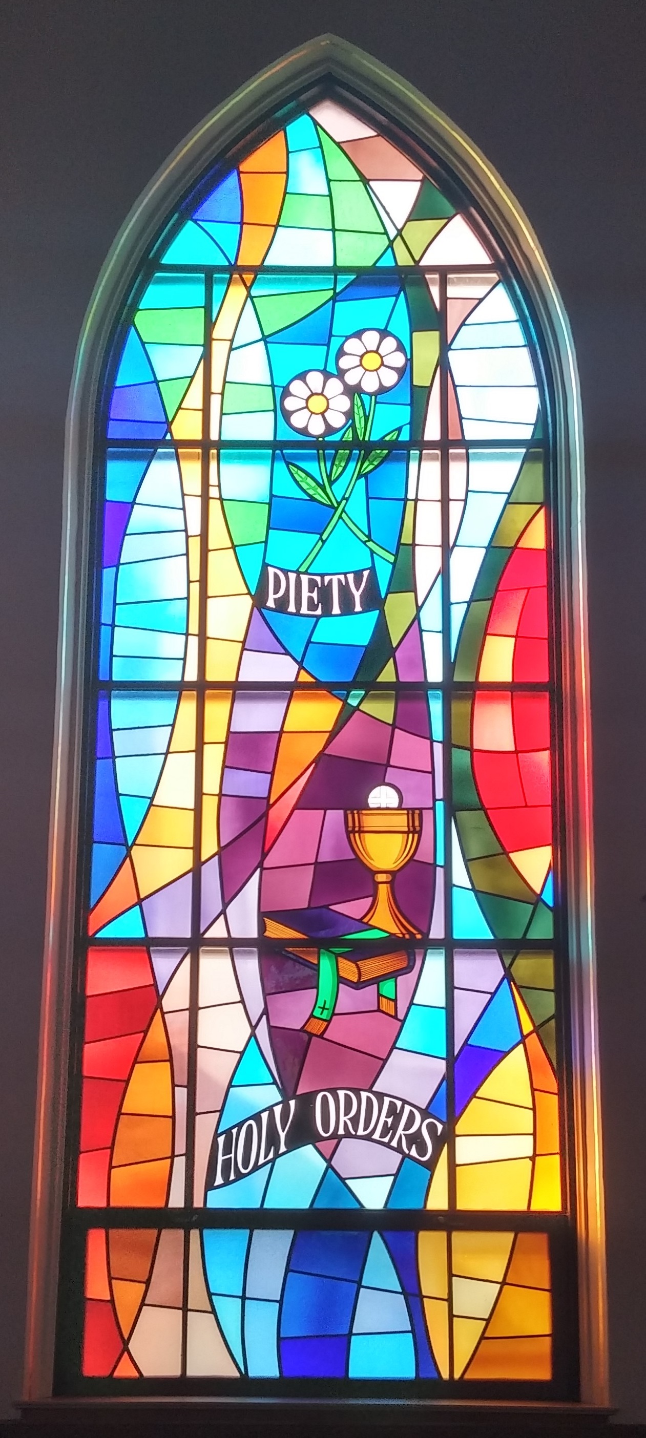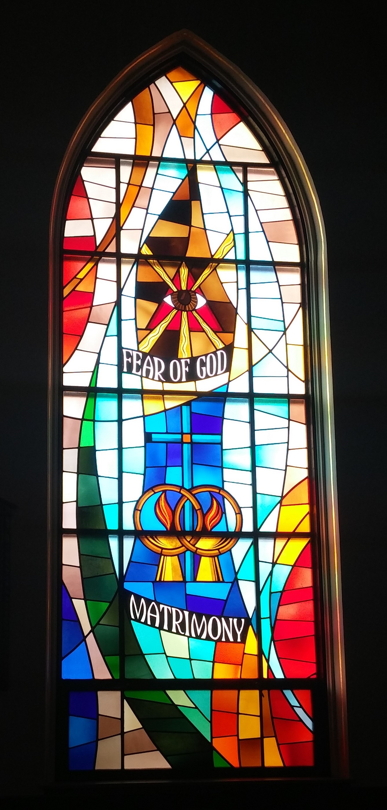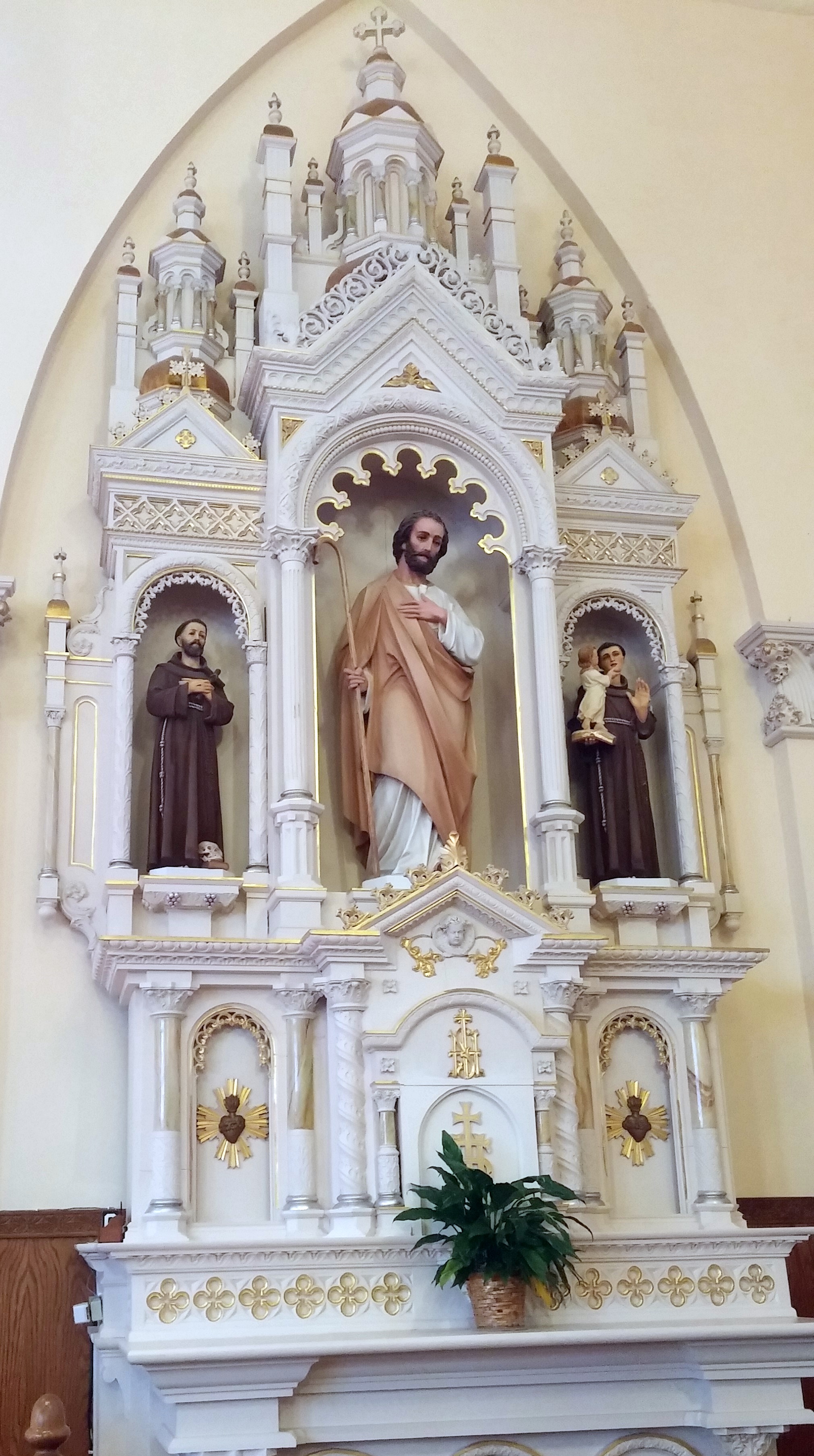 The church is traditional style and the stained glass windows are quite beautiful with their depictions of the Sacraments. The Altars, including the main and two side Altars are very intricately carved and ornate. Just amazing the time and effort put into them.