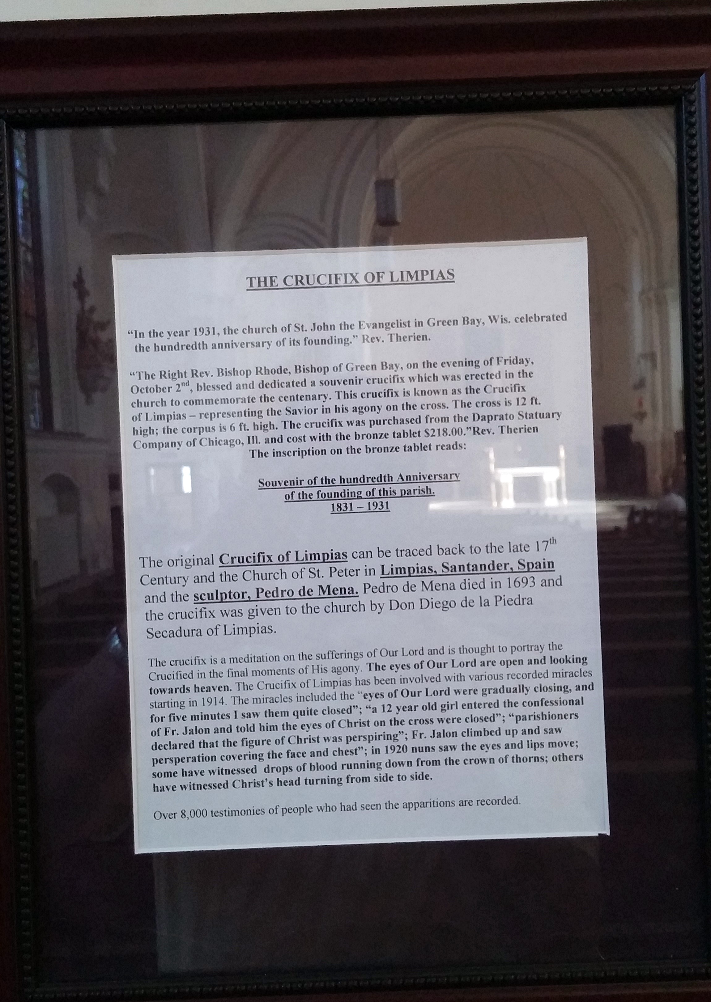 The congregation of St. John the Evangelist is the the oldest Catholic organization in Green Bay, and it can be safely added, of Northern Wisconsin, as it was attended by regular pastors as early as 1831. St. John's can also claim to be the first organized attempt to perpetuate the labors of the early missionaries, Fathers Allouez and Marquette. It is, in fact, the mother church of the City of Green Bay, as from it had branched out the German church, in 1853; the Hollandish, about 1860; the St. Patrick's congregation across the Fox River, in 1862; and the SS. Peter and Paul's church, in 1893.