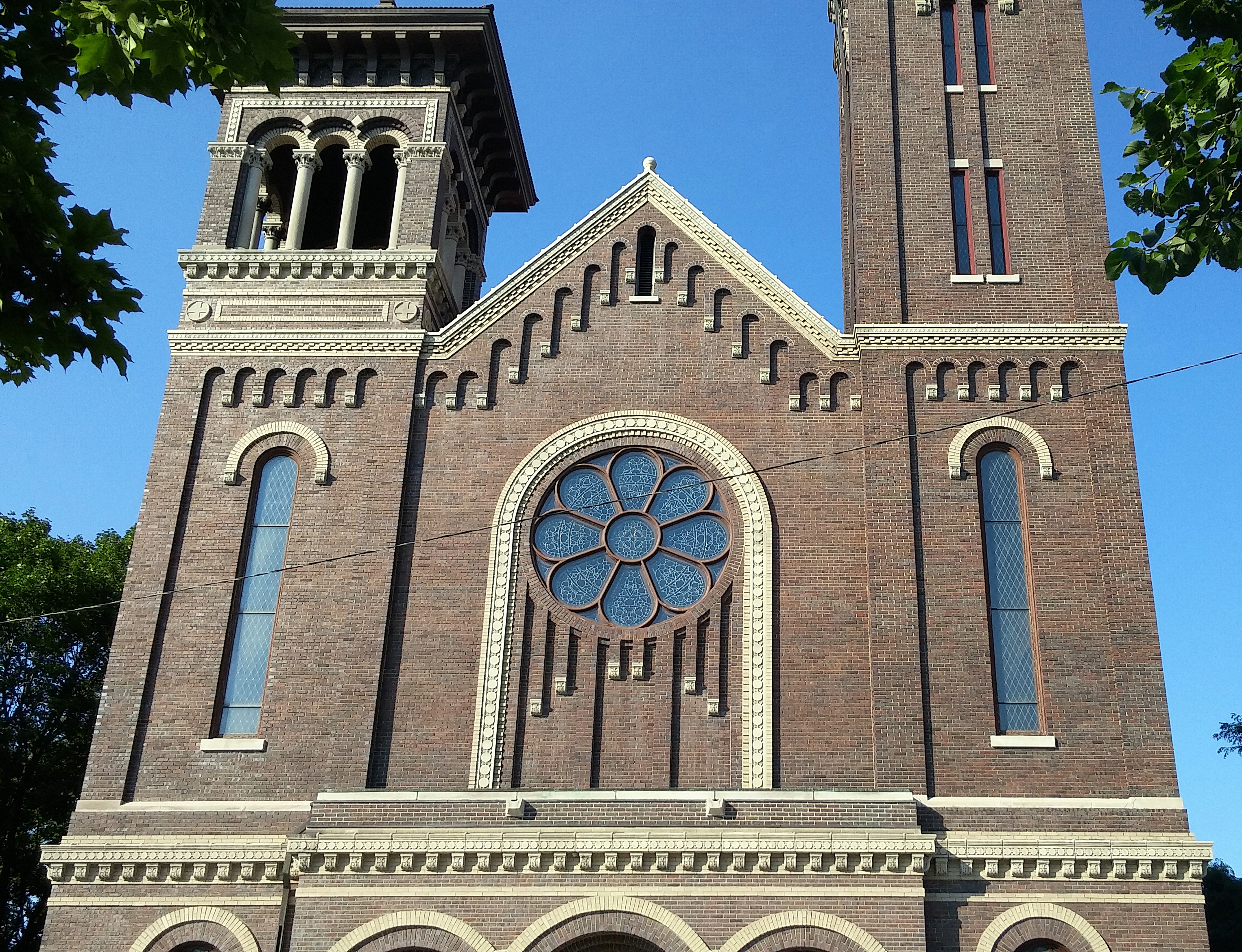 Progress of the new church building was rapid following the fire of March 1872. It was finished with a brick exterior and was about 45 ft. by 100 ft. in size. Tall twin steeples graced the front corners of the church and a triple archway led to the entrance doors, and a rectory was built in the place of the old church. It was thought to be one of the finest churches in the State of Wisconsin. With Bishop Melcher presiding, the church was dedicated on November 24, 1872.
