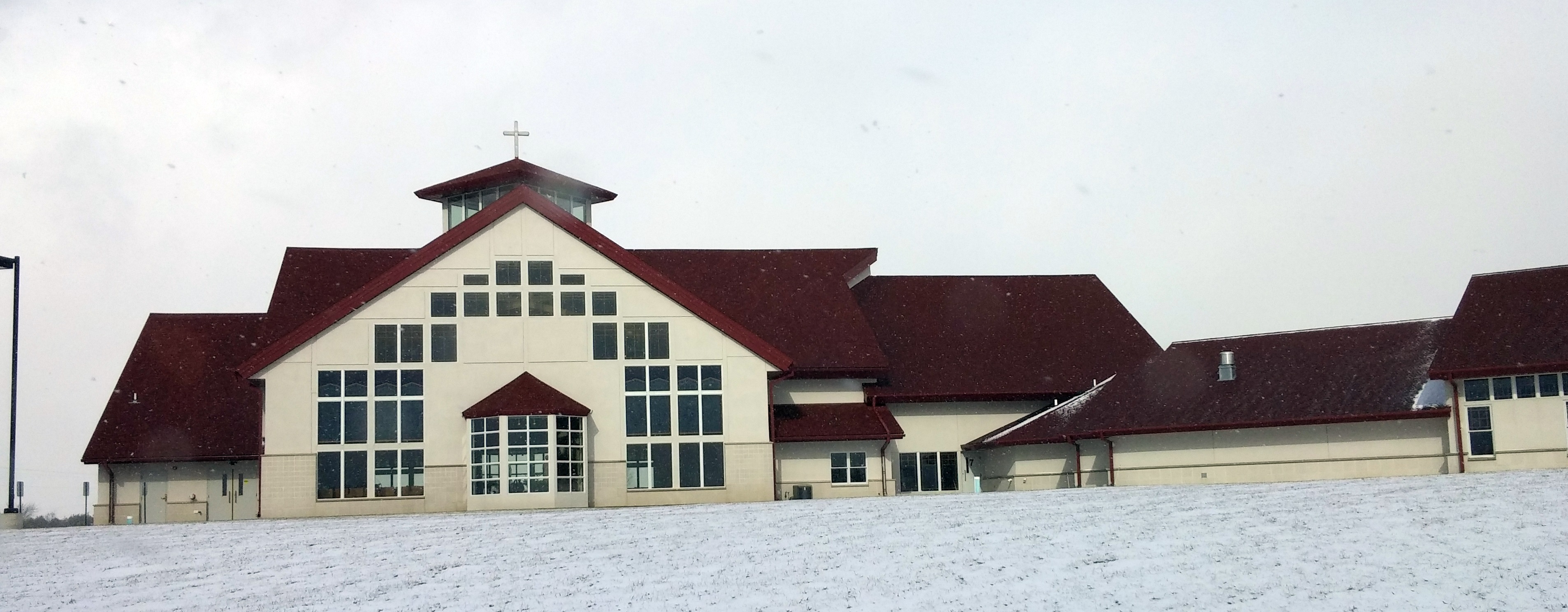 The new church is located out in the country on a hill off Hwy 42 and is in a beautiful setting. On a nice summer day it would have been a great time to spend outside walking around the building, but with the snow squalls that was not to be. But I did get some nice outside pictures including a nice one of the cross outside. The building inside is obviously new, but has a lot of nice wood but is not overly ornate or fancy. It is just really nice and had a really nice country feel. This is another church I’d really like to visit again.